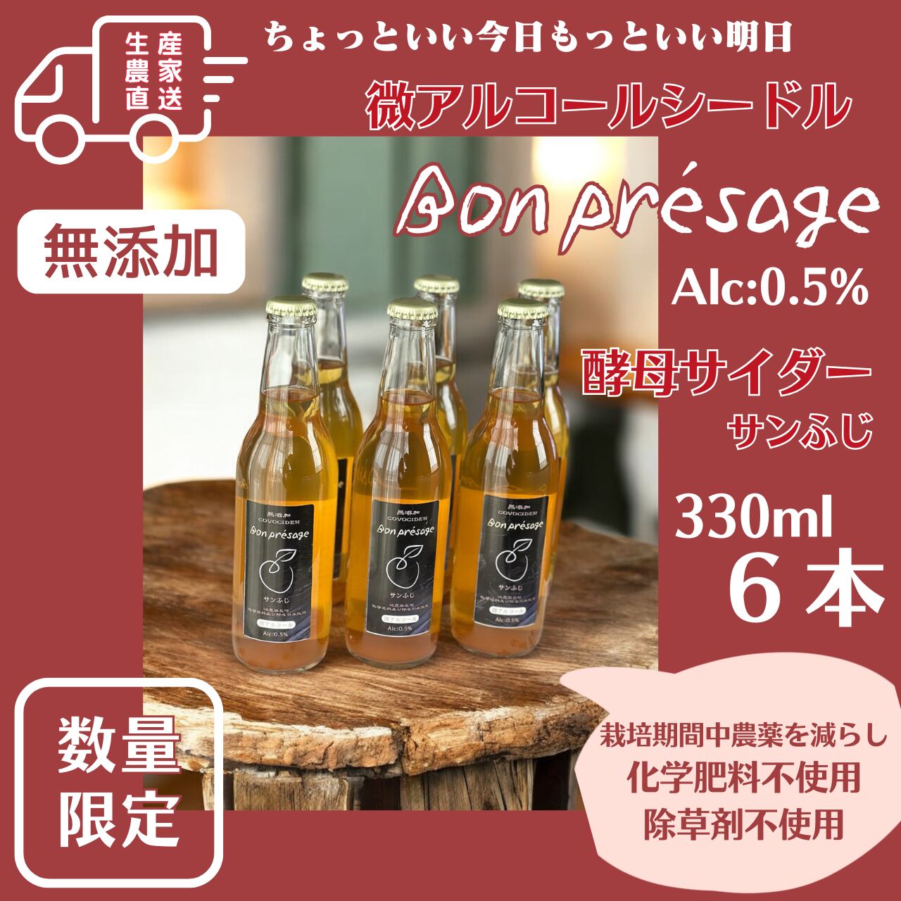 酸化防止剤不使用 無添加 微アルコールノンアルコール シードル 330ml 6本セット