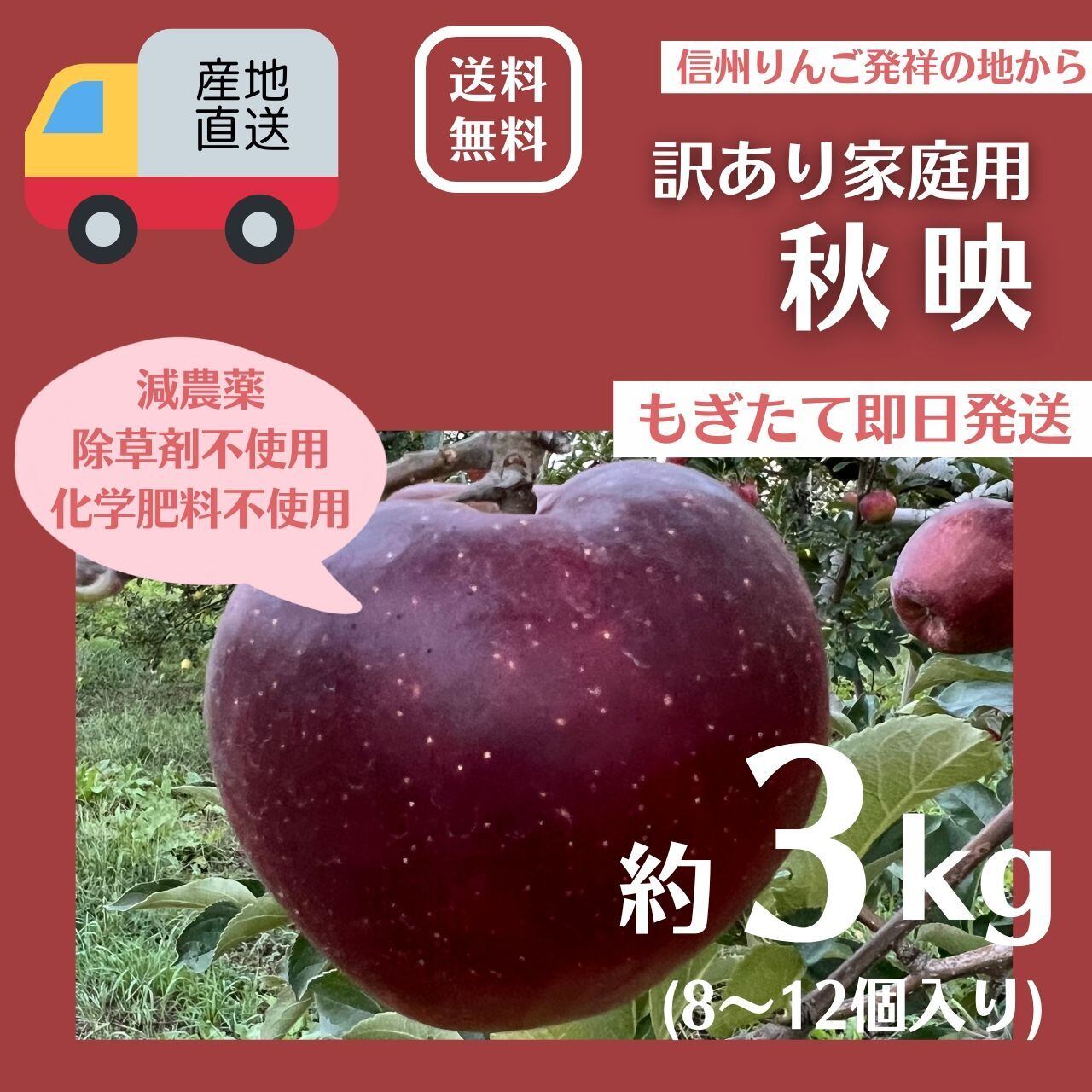 生産農家直送 りんご 秋映 訳ありご家庭用 3kg 信州りんご発祥の地 長沼りんご 長野県産 減農薬 除草剤不使用 安心安全 人にやさしく環境にもやさしい