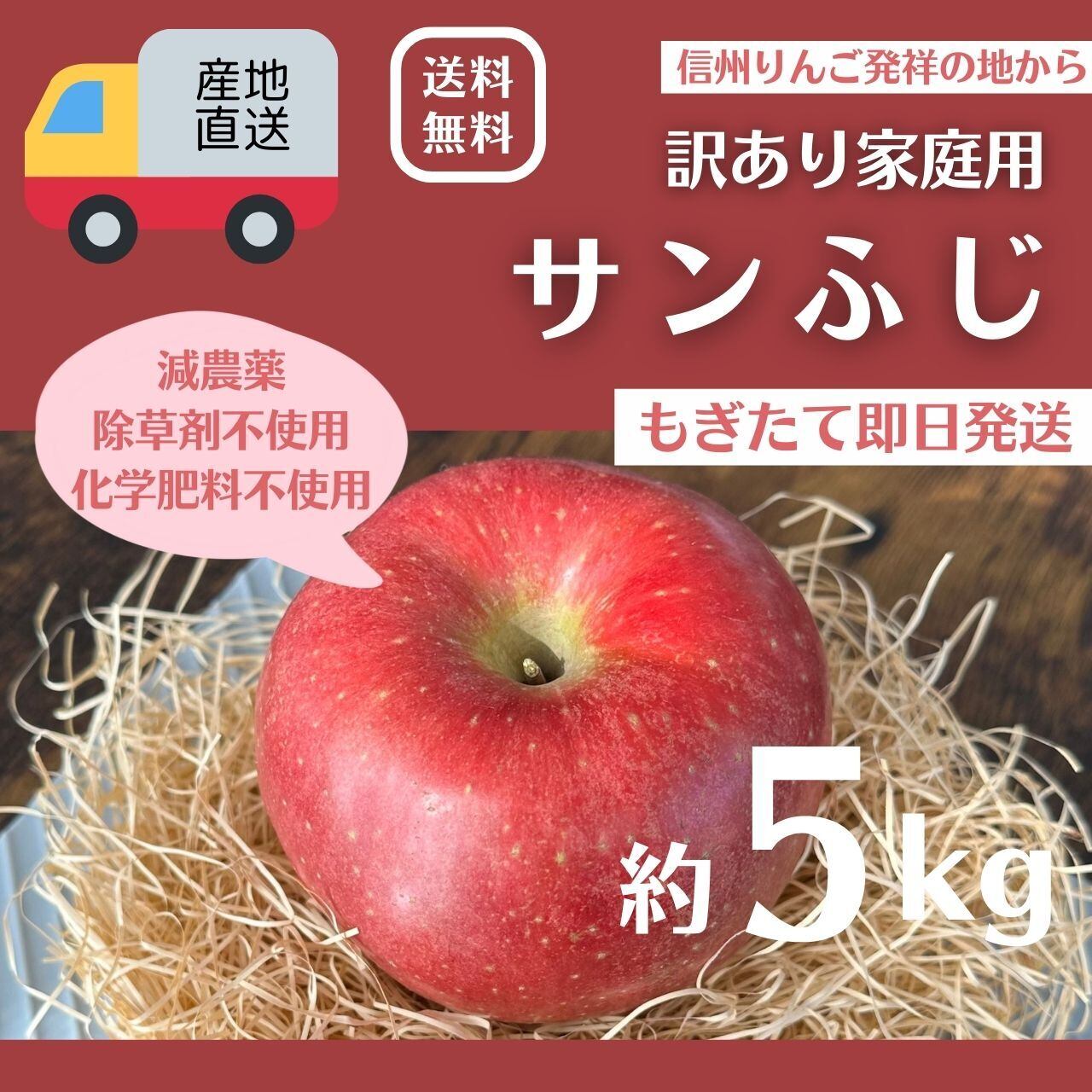 生産農家直送 りんご サンふじ 訳ありご家庭用 5kg 信州りんご発祥の地 長沼りんご 長野県産 減農薬 除草剤不使用 安心安全 人にやさしく環境にもやさしい