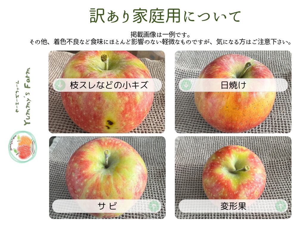 サイズ不揃いや着色不良のほか、枝スレなどの小キズ、サビ、日焼け、変形果など軽微なもので生食にはほとんど影響ございません。